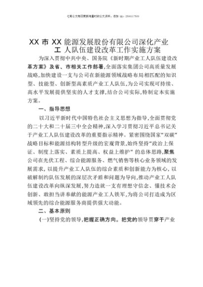 【七哥公文】2025年:XX市XX能源发展股份有限公司深化产业工人队伍建设改革工作实施方案+更多免费公文+VX:QiGeGongWen2024