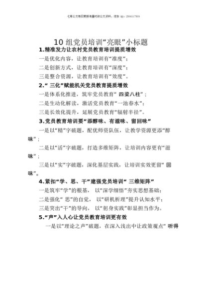 【七哥公文】2025年:10组党员培训“亮眼”小标题+更多免费公文+VX:QiGeGongWen2024