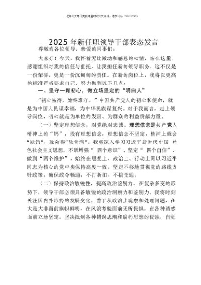 / 【七哥公文】2025年:2025年新任职领导干部表态发言+更多免费公文+VX:QiGeGongWen2024