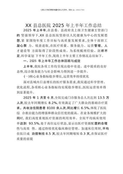 / 【七哥公文】2025年:XX县总医院2025年上半年工作总结+更多免费公文+VX:QiGeGongWen2024