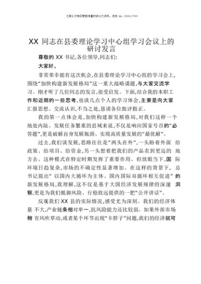 / 【七哥公文】2025年:XX同志在县委理论学习中心组学习会议上的研讨发言+更多免费公文+VX:QiGeGongWen2024