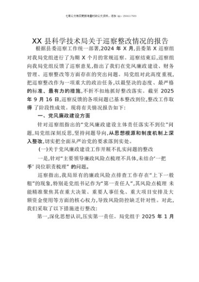 / 【七哥公文】2025年:XX县科学技术局关于巡察整改情况的报告+更多免费公文+VX:QiGeGongWen2024