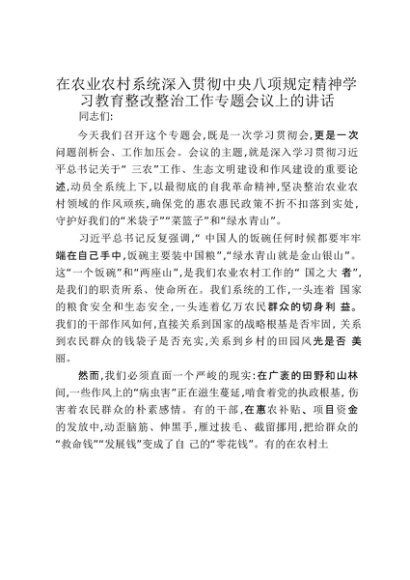 【七哥公文】2025年:在农业农村系统深入贯彻中央八项规定精神学习教育整改整治工作专题会议上的讲话_20250917_192235+更多免费公文+VX:QiGeGongWen2024