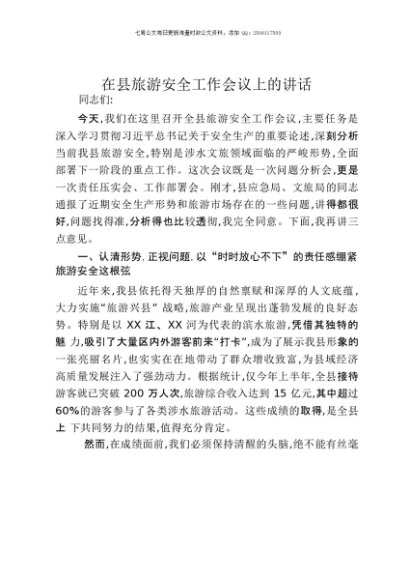 / 【七哥公文】2025年:在县旅游安全工作会议上的讲话+更多免费公文+VX:QiGeGongWen2024
