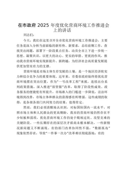 【七哥公文】2025年:在市政府2025年度优化营商环境工作推进会上的讲话_20250917_192234+更多免费公文+VX:QiGeGongWen2024