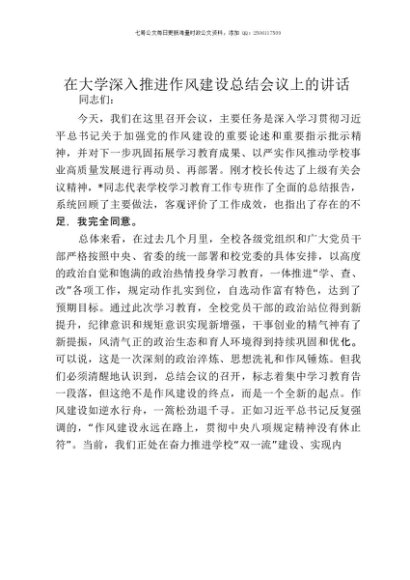 / 【七哥公文】2025年:在大学深入推进作风建设总结会议上的讲话+更多免费公文+VX:QiGeGongWen2024