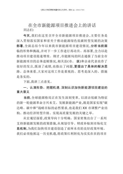 / 【七哥公文】2025年:在全市新能源项目推进会上的讲话+更多免费公文+VX:QiGeGongWen2024
