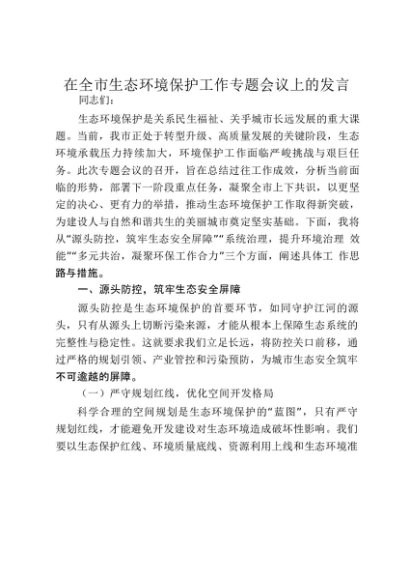 【七哥公文】2025年:在全市生态环境保护工作专题会议上的发言2_20250917_192233+更多免费公文+VX:QiGeGongWen2024