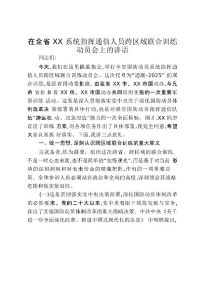【七哥公文】2025年:在全省XX系统指挥通信人员跨区域联合训练动员会上的讲话_20250917_192233+更多免费公文+VX:QiGeGongWen2024
