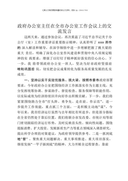 / 【七哥公文】2025年:政府办公室主任在全市办公室工作会议上的交流发言+更多免费公文+VX:QiGeGongWen2024