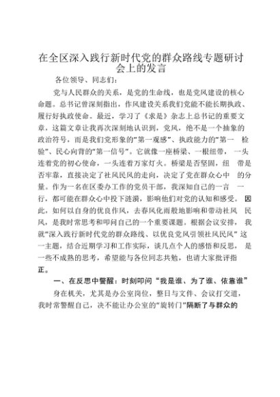 【七哥公文】2025年:在全区深入践行新时代党的群众路线专题研讨会上的发言_20250917_192233+更多免费公文+VX:QiGeGongWen2024