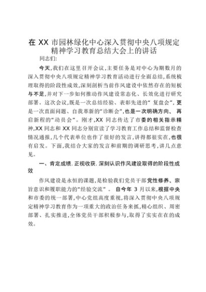 【七哥公文】2025年:在XX市园林绿化中心深入贯彻中央八项规定精神学习教育总结大会上的讲话_20250917_192232+更多免费公文+VX:QiGeGongWen2024