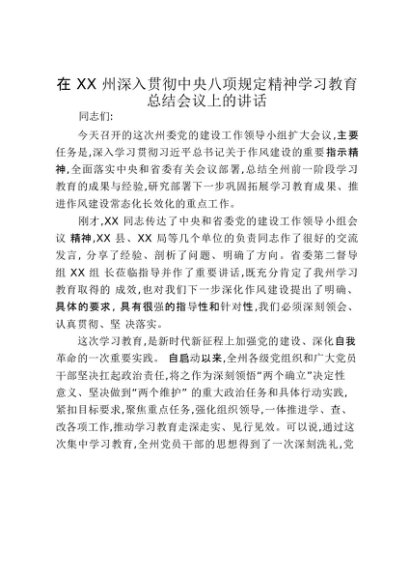 【七哥公文】2025年:在XX州深入贯彻中央八项规定精神学习教育总结会议上的讲话_20250917_192232+更多免费公文+VX:QiGeGongWen2024
