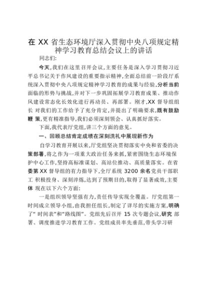 【七哥公文】2025年:在XX省生态环境厅深入贯彻中央八项规定精神学习教育总结会议上的讲话_20250917_192233+更多免费公文+VX:QiGeGongWen2024