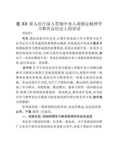 【七哥公文】2025年:在XX省人社厅深入贯彻中央八项规定精神学习教育总结会上的讲话_20250917_192233+更多免费公文+VX:QiGeGongWen2024
