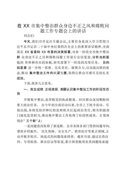 【七哥公文】2025年:在XX市集中整治群众身边不正之风和腐败问题工作专题会上的讲话_20250917_192233+更多免费公文+VX:QiGeGongWen2024