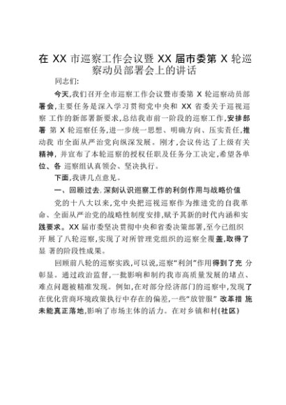 【七哥公文】2025年:在XX市巡察工作会议暨XX届市委第X轮巡察动员部署会上的讲话_20250917_192233+更多免费公文+VX:QiGeGongWen2024