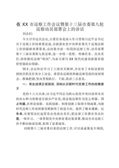 【七哥公文】2025年:在XX市巡察工作会议暨第十三届市委第九轮巡察动员部署会上的讲话_20250917_192233+更多免费公文+VX:QiGeGongWen2024
