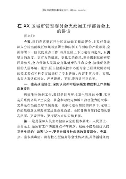 / 【七哥公文】2025年:在XX区城市管理委员会灭蚊蝇工作部署会上的讲话+更多免费公文+VX:QiGeGongWen2024
