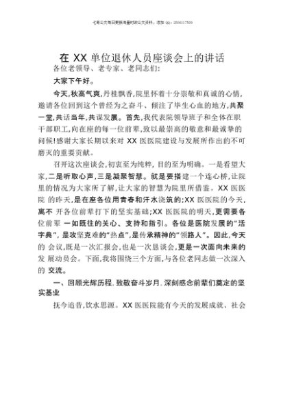 / 【七哥公文】2025年:在XX单位退休人员座谈会上的讲话+更多免费公文+VX:QiGeGongWen2024