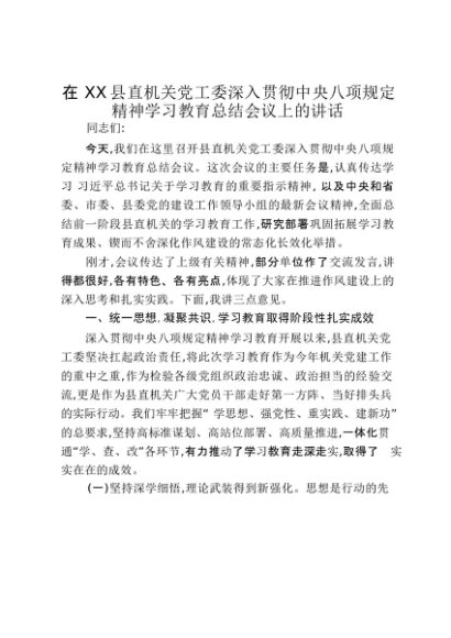 【七哥公文】2025年:在XX县直机关党工委深入贯彻中央八项规定精神学习教育总结会议上的讲话_20250917_192232+更多免费公文+VX:QiGeGongWen2024