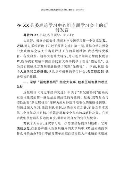 / 【七哥公文】2025年:在XX县委理论学习中心组专题学习会上的研讨发言+更多免费公文+VX:QiGeGongWen2024