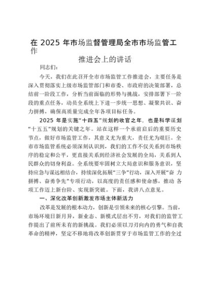 【七哥公文】2025年:在2025年市场监督管理局全市市场监管工作推进会上的讲话_20250917_192232+更多免费公文+VX:QiGeGongWen2024