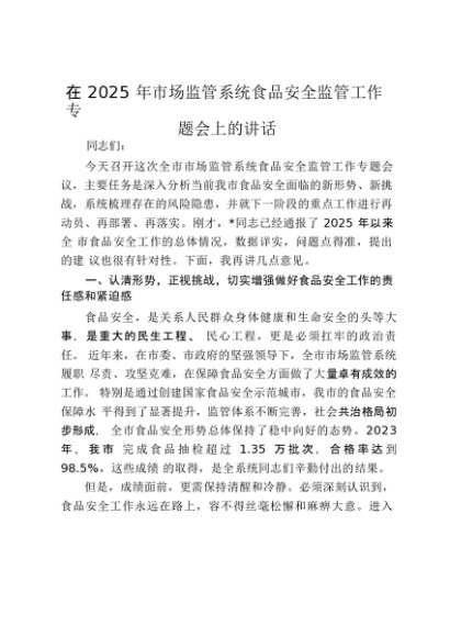【七哥公文】2025年:在2025年市场监管系统食品安全监管工作专题会上的讲话_20250917_192232+更多免费公文+VX:QiGeGongWen2024