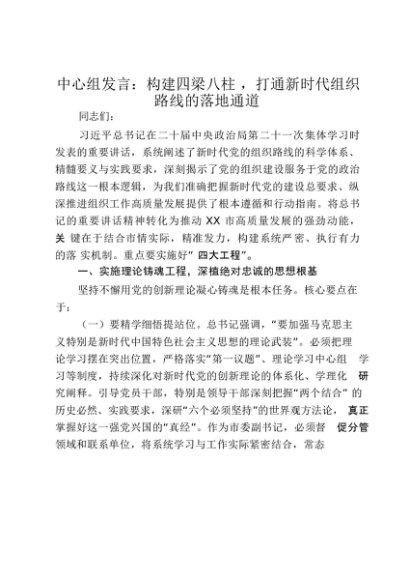 【七哥公文】2025年:中心组发言:构建四梁八柱,打通新时代组织路线的落地通道_20250917_192232+更多免费公文+VX:QiGeGongWen2024