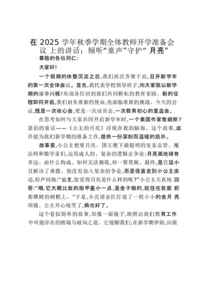 【七哥公文】2025年:在2025学年秋季学期全体教师开学准备会议上的讲话:倾听“童声”守护“月亮”_20250917_192233+更多免费公文+VX:QiGeGongWen2024