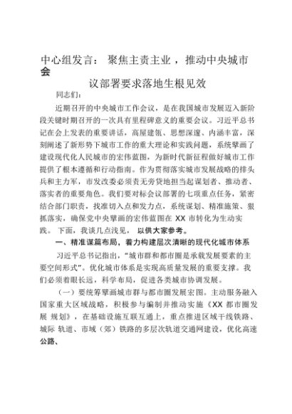 【七哥公文】2025年:中心组发言:聚焦主责主业,推动中央城市会议部署要求落地生根见效_20250917_192232+更多免费公文+VX:QiGeGongWen2024
