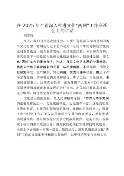 【七哥公文】2025年:在2025年全市深入推进文化“两创”工作座谈会上的讲话_20250917_192232+更多免费公文+VX:QiGeGongWen2024