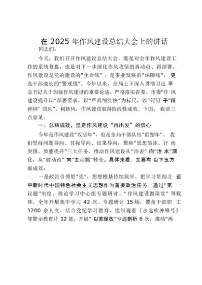 【七哥公文】2025年:在2025年作风建设总结大会上的讲话_20250917_192233+更多免费公文+VX:QiGeGongWen2024