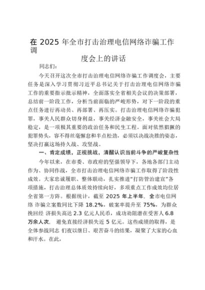 【七哥公文】2025年:在2025年全市打击治理电信网络诈骗工作调度会上的讲话_20250917_192232+更多免费公文+VX:QiGeGongWen2024