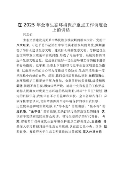 【七哥公文】2025年:在2025年全市生态环境保护重点工作调度会上的讲话_20250917_192232+更多免费公文+VX:QiGeGongWen2024