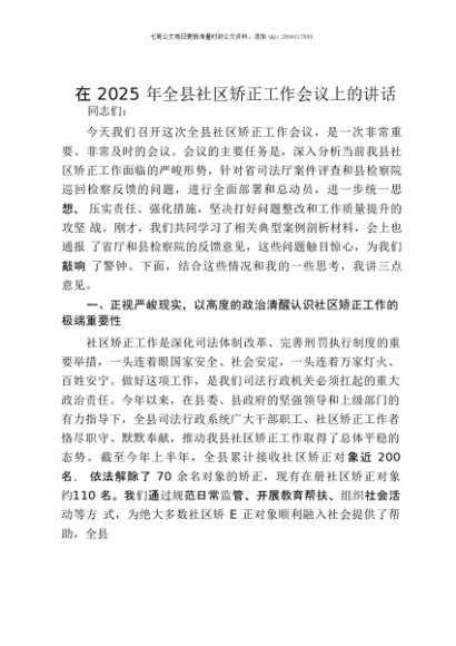/ 【七哥公文】2025年:在2025年全县社区矫正工作会议上的讲话+更多免费公文+VX:QiGeGongWen2024