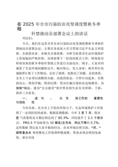 【七哥公文】2025年:在2025年全市污染防治攻坚调度暨秋冬季秸秆禁烧动员部署会议上的讲话_20250917_192232+更多免费公文+VX:QiGeGongWen2024