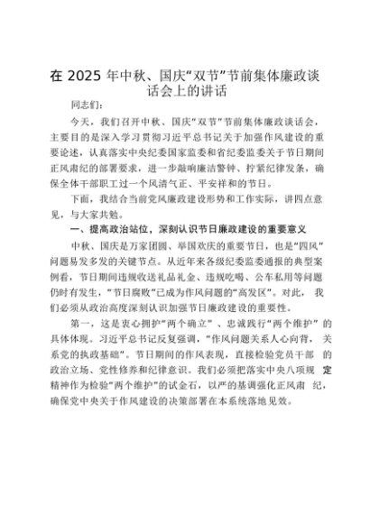 【七哥公文】2025年:在2025年中秋、国庆“双节”节前集体廉政谈话会上的讲话_20250917_192233+更多免费公文+VX:QiGeGongWen2024