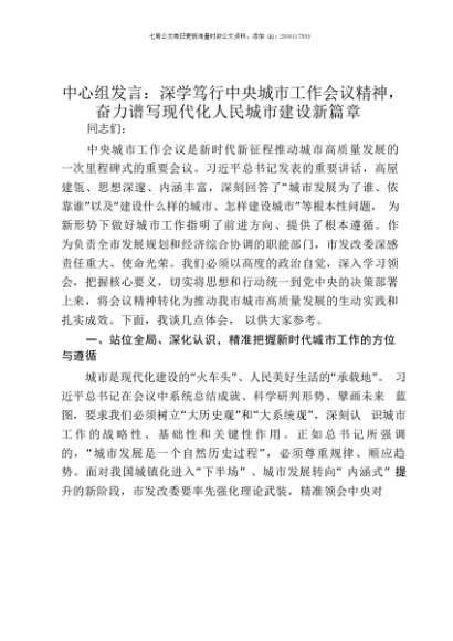 【七哥公文】2025年:中心组发言:深学笃行中央城市工作会议精神,奋力谱写现代化人民城市建设新篇章+更多免费公文+VX:QiGeGongWen2024