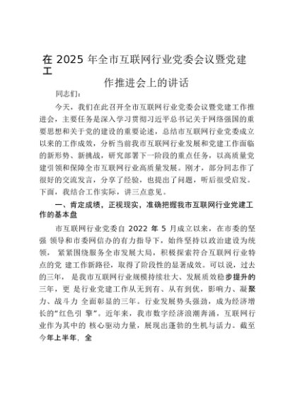 【七哥公文】2025年:在2025年全市互联网行业党委会议暨党建工作推进会上的讲话_20250917_192233+更多免费公文+VX:QiGeGongWen2024