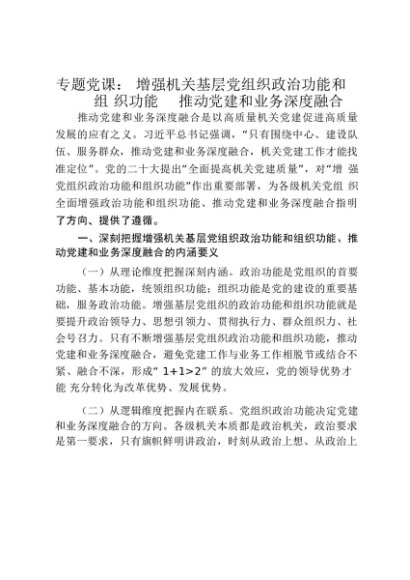 【七哥公文】2025年:专题党课讲稿:增强机关基层党组织政治功能和组织功能 推动党建和业务深度融合_20250917_192232+更多免费公文+VX:QiGeGongWen2024