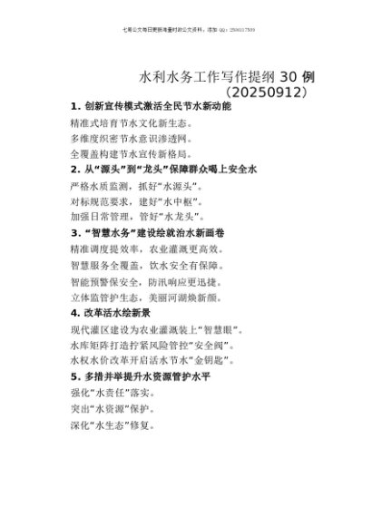 / 【七哥公文】2025年:水利水务工作写作提纲30例(20250912)+更多免费公文+VX:QiGeGongWen2024
