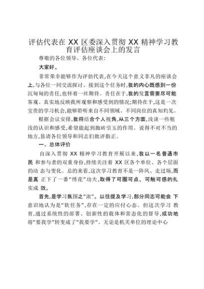 【七哥公文】2025年:评估代表在XX区委深入贯彻XX精神学习教育评估座谈会上的发言_20250917_192236+更多免费公文+VX:QiGeGongWen2024