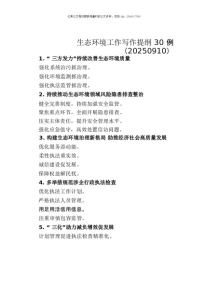/ 【七哥公文】2025年:生态环境工作写作提纲30例(20250910)+更多免费公文+VX:QiGeGongWen2024