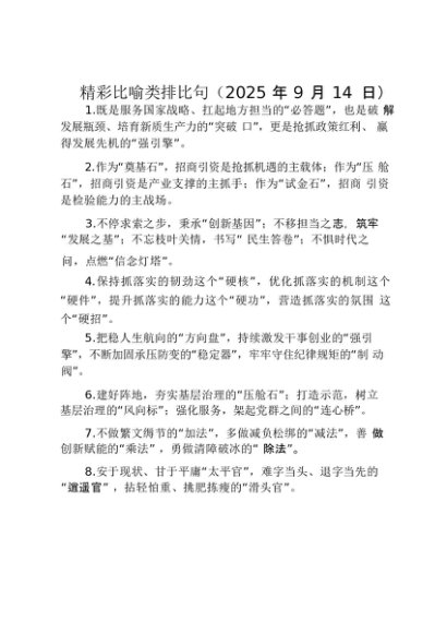 【七哥公文】2025年:精彩比喻类排比句(2025年9月14日)_20250917_192236+更多免费公文+VX:QiGeGongWen2024