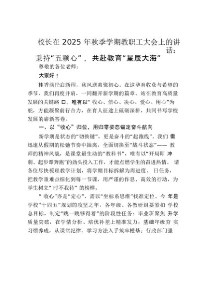 【七哥公文】2025年:校长在2025年秋季学期教职工大会上的讲话:秉持“五颗心”,共赴教育“星辰大海”_20250917_192236+更多免费公文+VX:QiGeGongWen2024