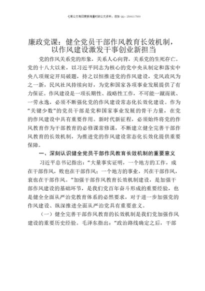 【七哥公文】2025年:廉政党课:健全党员干部作风教育长效机制,以作风建设激发干事创业新担当+更多免费公文+VX:QiGeGongWen2024