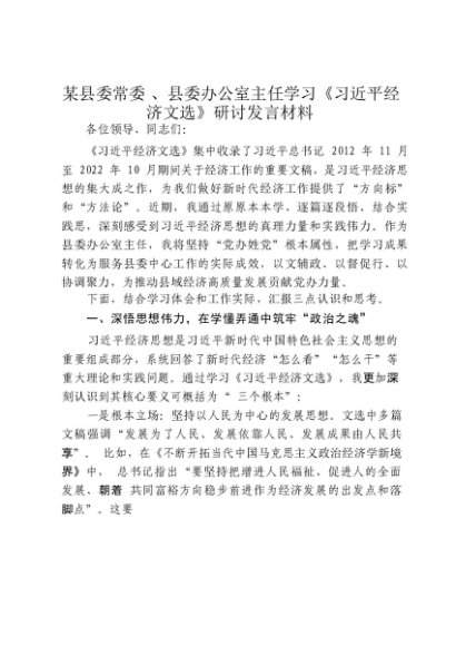 【七哥公文】2025年:某县委常委、县委办公室主任学习《习近平经济文选》研讨发言材料_20250917_192236+更多免费公文+VX:QiGeGongWen2024