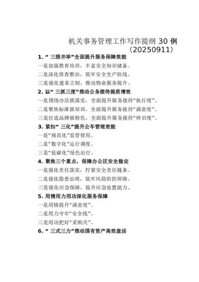 【七哥公文】2025年:机关事务管理工作写作提纲30例(20250911)_20250917_192235+更多免费公文+VX:QiGeGongWen2024