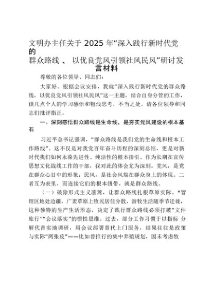 【七哥公文】2025年:文明办主任关于2025年“深入践行新时代党的群众路线、以优良党风引领社风民风”研讨发言材料_20250917_192235+更多免费公文+VX:QiGeGongWen2024